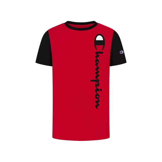 For the active boy, reach for the Champion all over print short sleeve T-shirt. With trending details and a comfortable construction, this play and school-friendly T-shirt will become his go-to.