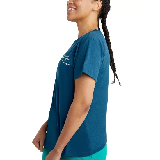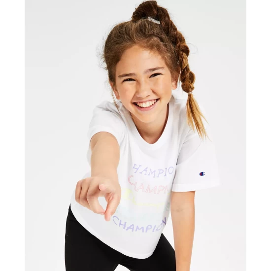 Style your fashionista in this multicolor Champion T-shirt with a roomy boxy fit. It’s soft and comfortable perfect for any activity.