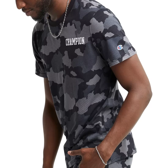 A soft classic with an edge, this all-cotton Champion T-shirt features allover camo that keeps you stylishly comfortable.