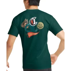 Level up your laid-back look with the bold logo graphics printed at the chest and back of this Classic cotton T-shirt from Champion.