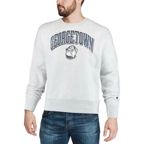 Give your Georgetown Hoyas fandom a boost when it’s cold out by wearing this Champion Arch Over Logo reverse weave pullover sweatshirt.
