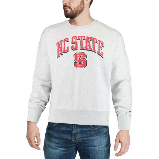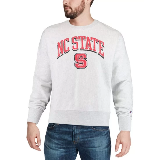Give your NC State Wolfpack fandom a boost when it’s cold out by wearing this Champion Arch Over Logo reverse weave pullover sweatshirt.