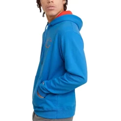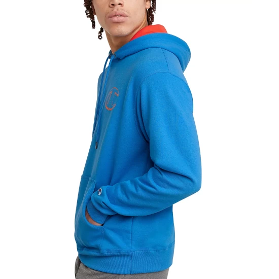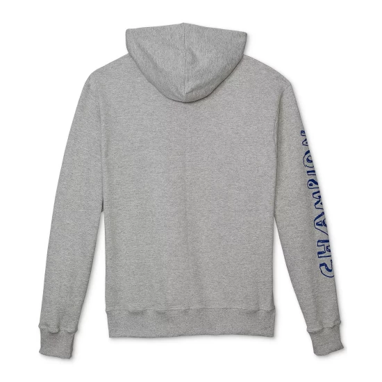 Keep your sporty look stylish and warm for cooler weather with the soft fleece and sketched logo graphics printed on this Powerblend hoodie from Champion.