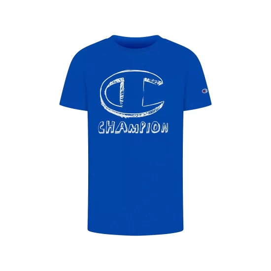 For the active boy, reach for the Champion hand drawn C script T-shirt. With trending details and a comfortable construction, this play and school-friendly T-shirt will become his go-to.