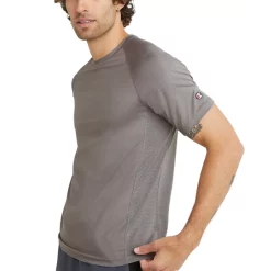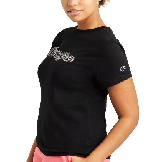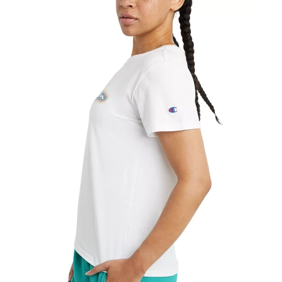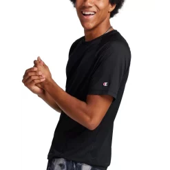 - Champion script back neck tape; iconic “C” patch at left sleeve; made with US grown cotton