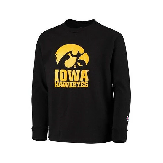 On cooler days, keep excitement for the Iowa Hawkeyes at a high level with this Lockup T-shirt from Champion. It features large Iowa Hawkeyes graphics printed across the front and a traditional crew neck. This tee will also feel comfortable to wear all day thanks to the lightweight fabric.